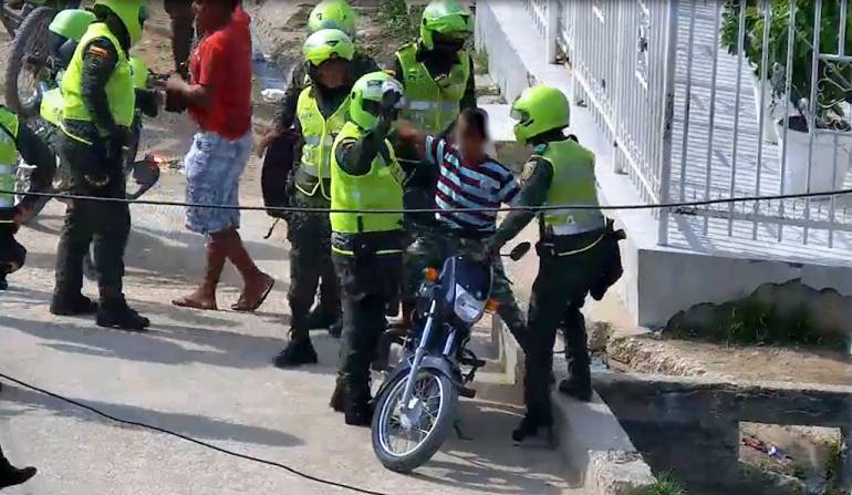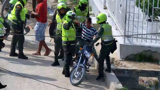 De manera simultánea, en el barrio la candelaria, fue capturado un individuo de 25 años de edad, y aprehendido un menos de 16 años, quien bajo la lupa de las cámaras de seguridad, distribuía y portaban estupefacientes en una motocicleta; los radio operadores de las cámaras de seguridad visualizan cuando el adulto le entrega un paquete al menor de edad, el cual lo guarda en la pretina de su pantalón, las patrullas son alertadas sobre el caso y llegan de manera inmediata logrando cumplir con la misión de capturar estos presuntos delincuentes e incautar la droga.