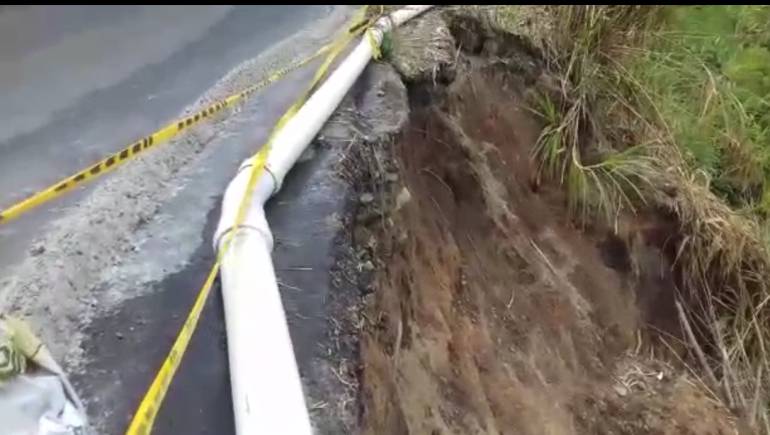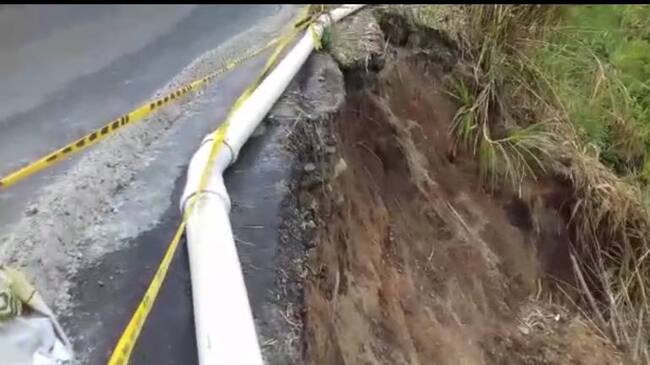 Hace 15 días se fue parte de la vía en la vereda Cañaveral y ahora solo tienen un carril.