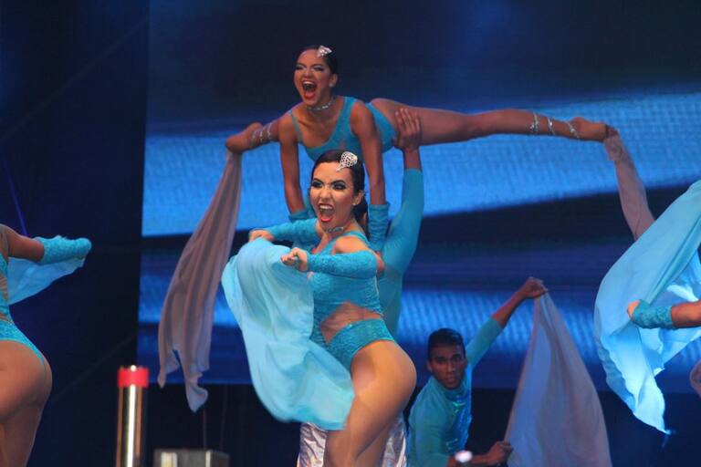 Durante más de una hora, 500 bailarines de 22 grupos folclóricos y cuatros casas de cultura participaron en una puesta en escena que exaltó los elementos tradicionales más significativos del Carnaval de Barranquilla a lo largo de su historia.