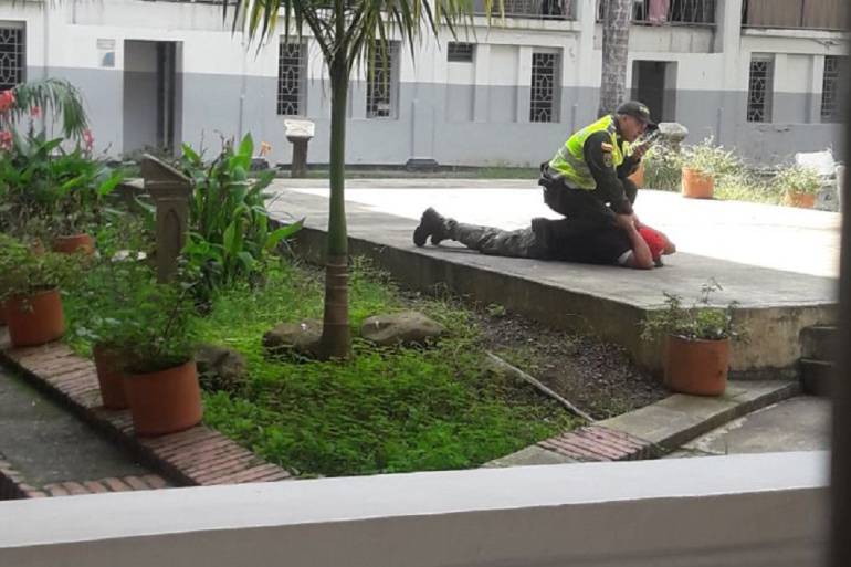 El momento de pánico se vivió luego de que el hombre en el interior de la Asamblea del Valle, con arengas, amenazaba con hacerse explotar porque en el maletín tenía explosivos. Posteriormente el hombre fue tirándolo al piso por un agente de la Policía.