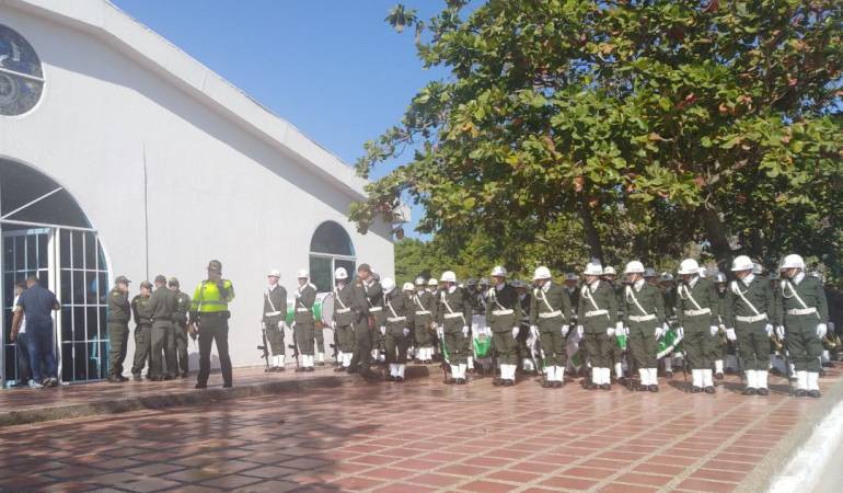 En una solemne eucaristía realizada en la Escuela de Policía Antonio Nariño, las familias, instituciones y autoridades en Barranquilla dan el último adiós a los 5 oficiales que murieron en un atentado en la estación de Policía del barrio San José.