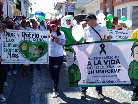 La marcha y plantón fueron organizadas luego de los atentados de la semana anterior en Barranquilla donde murieron 6 policías y 39 más resultaron heridos. Una de las víctimas, el patrullero Yeison Márquez, de 29 años, era oriundo del departamento de Sucre