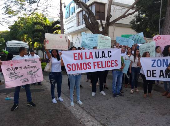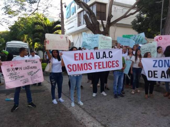 Empleados de la Universidad Autónoma del Caribe adelantaron una jornada de protesta con pancartas y cánticos enérgicos, cansados, según ellos, por las demoras en los pagos de salarios y prestaciones sociales que han hecho renunciar a varios de sus mejores catedráticos.