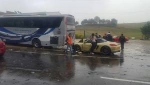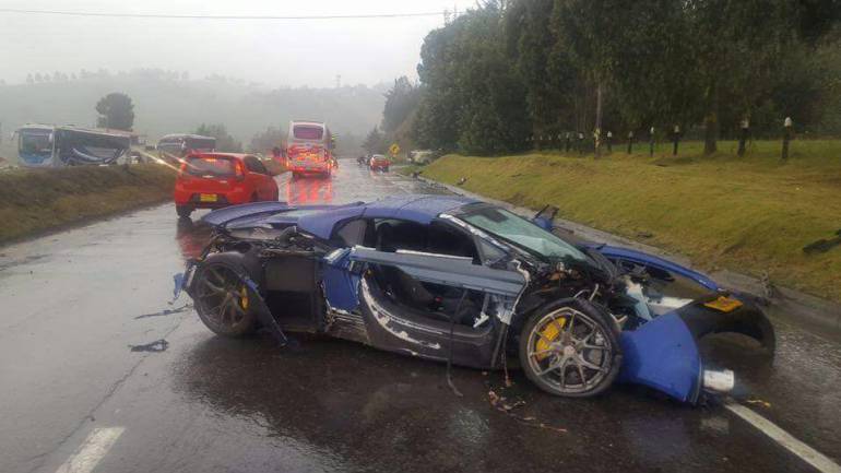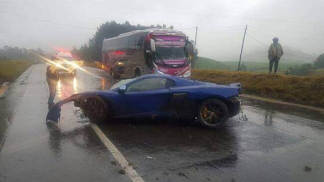 El único McLaren 650S del país, un Mercedes-AMG GT S, un Porsche Boxster y un Lamborghini, protagonizaron un fuerte choque en la mañana de hoy en la vía nacional Bogotá-Tunja, a la altura del municipio de Villapinzón.