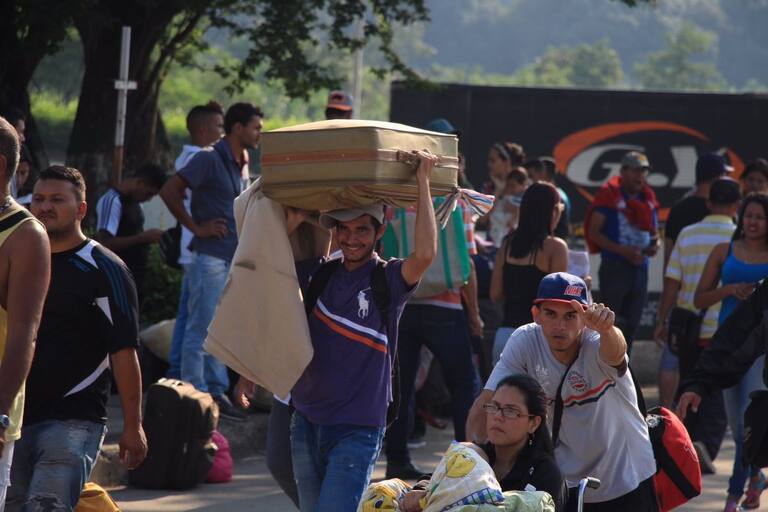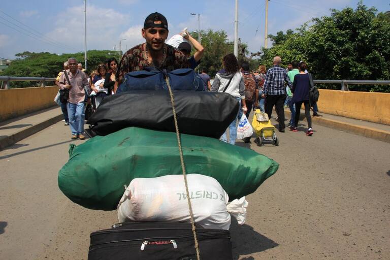 Un venezolano atraviesa el puente Internacional Simón Bolívar con "lo necesario" para empezar una vida en Colombia.