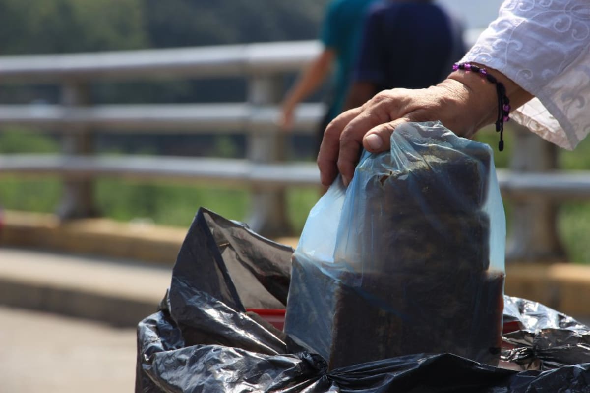 Tres bloques... de panela hacen parte de la mudanza de esta venezolana que atraviesa la frontera hacia Colombia.