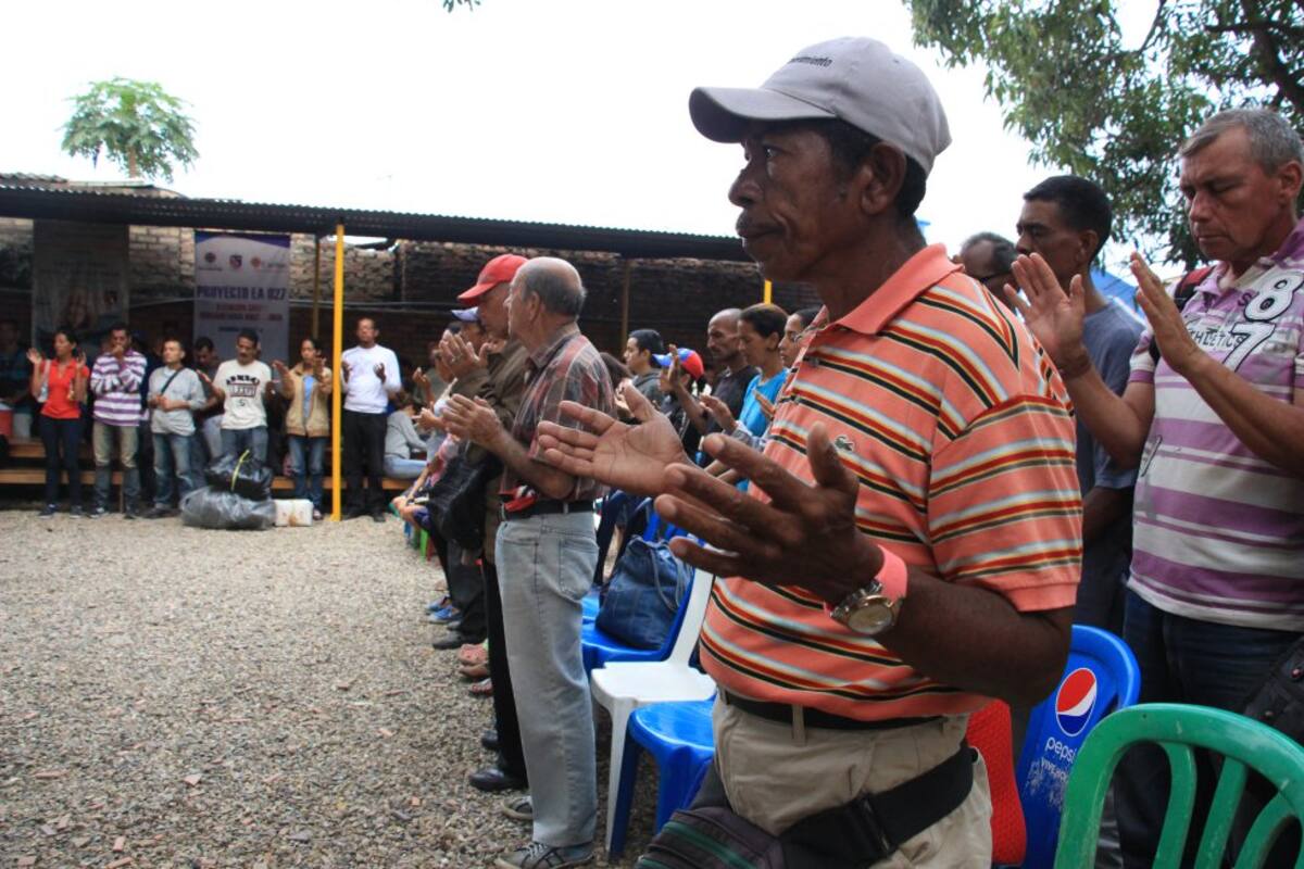 ¿Abrasados o abrazados? Reuniones religiosas como la de la foto hacen que los venezolanos encuentren apoyo y alimenten la fe para enfrentar la migración.