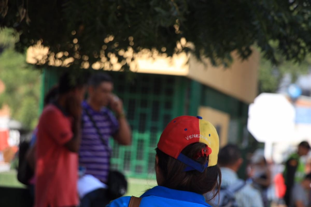 Una gorra con los colores de la bandera venezolana acompaña a una migrante. El amarillo venezolano, al igual que el colombiano, simboliza las riquezas, cuya ausencia es la que agudiza la crisis migratoria.