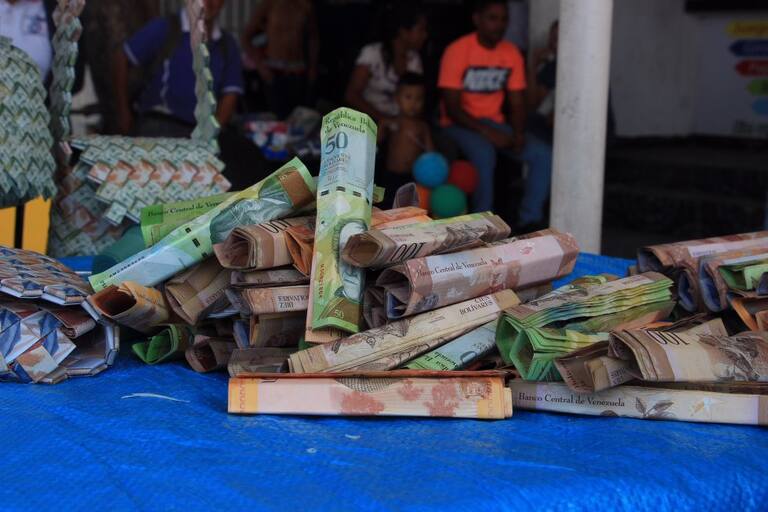 Decenas de billetes, pero muy poco valor. La devaluación hace que la moneda venezolana sea cada vez más insignificante.
