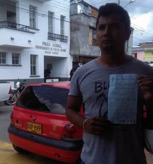 Es el caso de Juan Manuel Mambuscai quien estaba acompañando la protesta que se generó en contra del candidato presidencial Rodrigo Londoño, Timochenko en el municipio de Quimbaya, pues en un momento y en medio del furor, dio un golpe con su mano a un carro de policía, lo cual fue el accionar para que un agente de policía lo sancionara con un comparendo por insulto a la policía, escuchemos