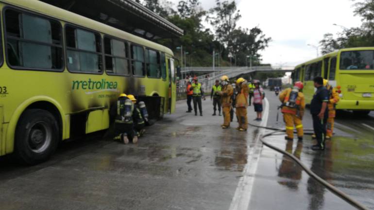 Un incendio se presentó en un bus articulado de Metrolínea en cercanías a la sede de Comfenalco en la vía a Piedecuesta, la ruta es la T1. La situación fue controlada por bomberos de Floridablanca.