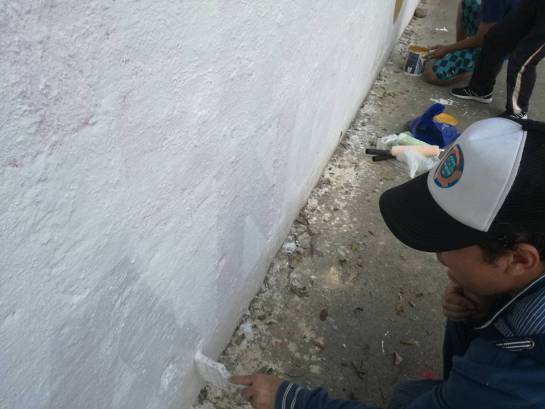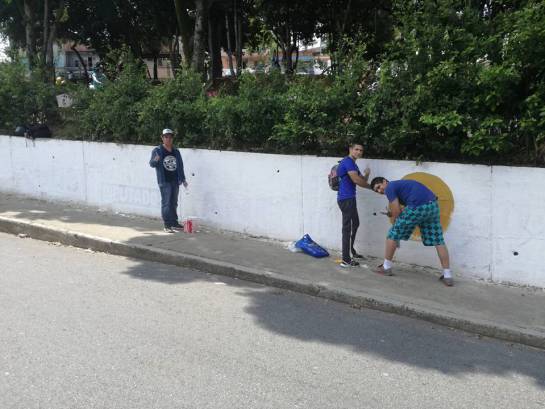 Armados de pintura de colores y de pinceles, los jóvenes dibujaron grafitis en las paredes usadas por los aspirantes al congreso para marcar el logo de los diferentes partidos y los números que los identificarán en el tarjetón.