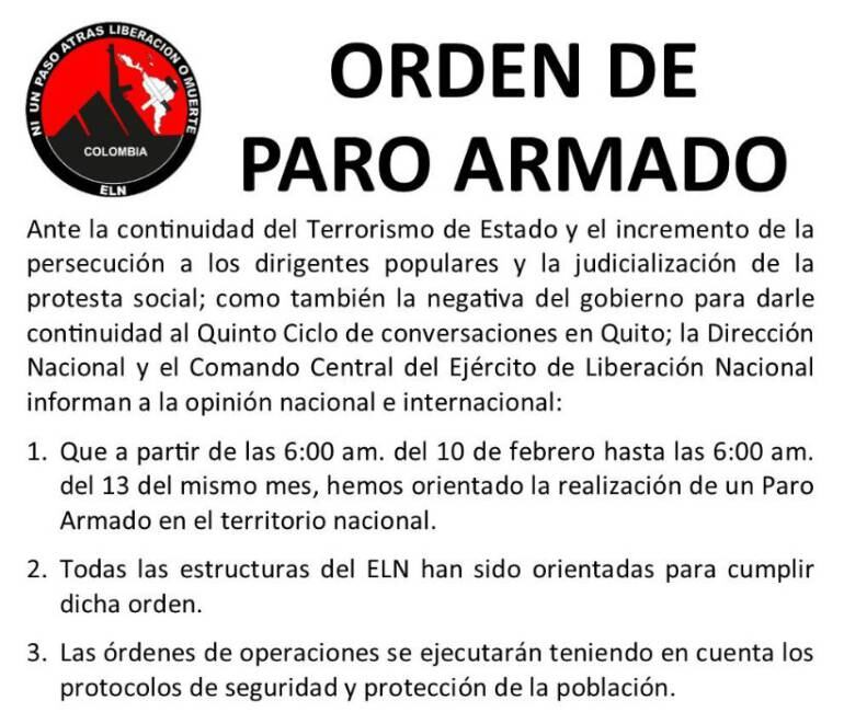 La Octava Brigada del Ejército mantendrá el dispositivo de uniformados en la zona limítrofe a raíz de la amenaza de paro armado del ELN.