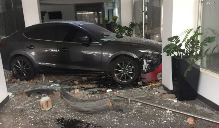 En medio del lobby quedó el lujoso carro de matrículas EFP 892 modelo 2018, con daños en su parte frontal y laterales, mientras que la sede física del motel quedó averiada en paredes, vidrieras y otras instalaciones.
