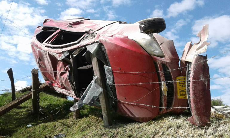 Aparentemente un microsueño y el exceso de velocidad, provocaron que el vehículo Chévrolet Sail LS se saliera de la vía, y quedara incrustado en una cerca de uno de los costados de la carretera.