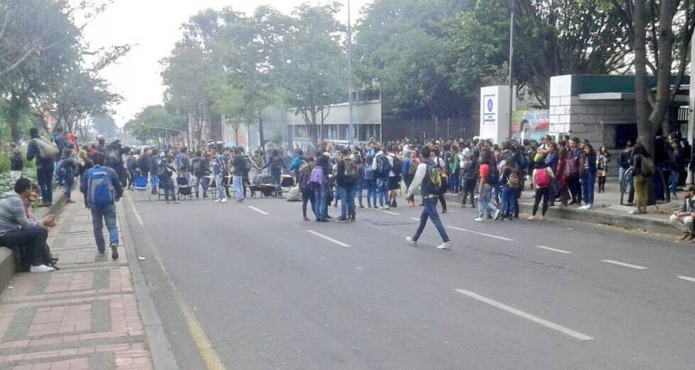 Reportan bloqueos por protestas frente a Universidad Pedagógica en Bogotá