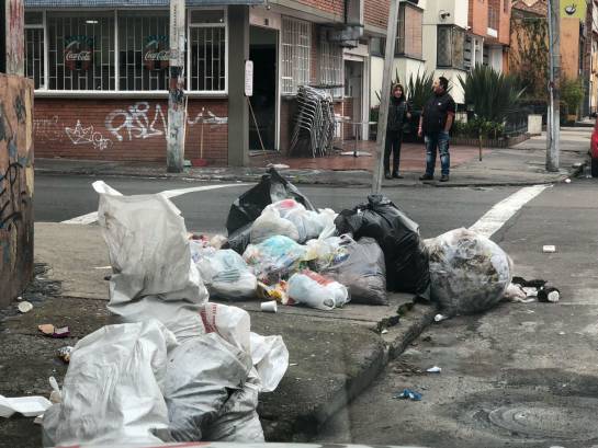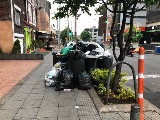 La localidad de Chapinero amaneció llena de basura y a las canecas de edificios y conjuntos residenciales de la zona no les cabe una bolsa más.