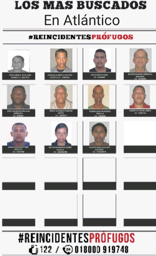 Los once reincidentes más buscados en Atlántico por hurto