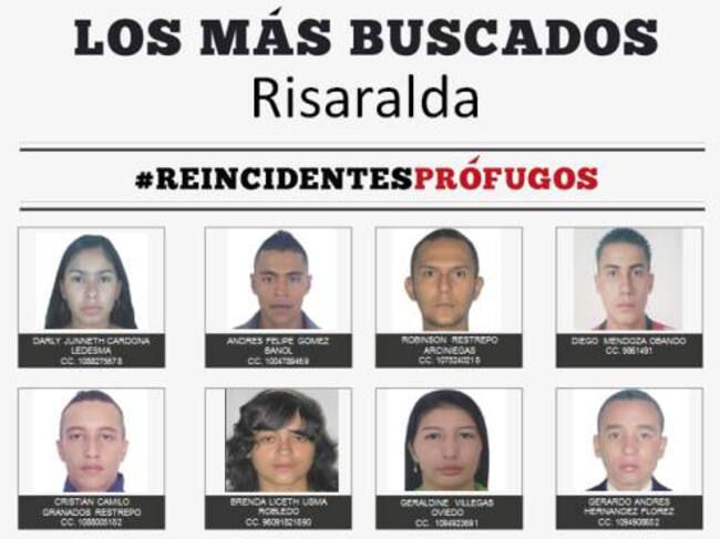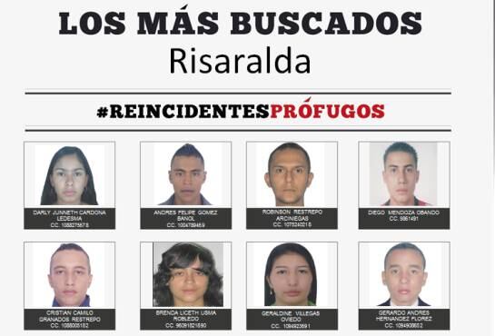 Cinco hombres y tres mujeres son los reincidentes más buscados en Risaralda