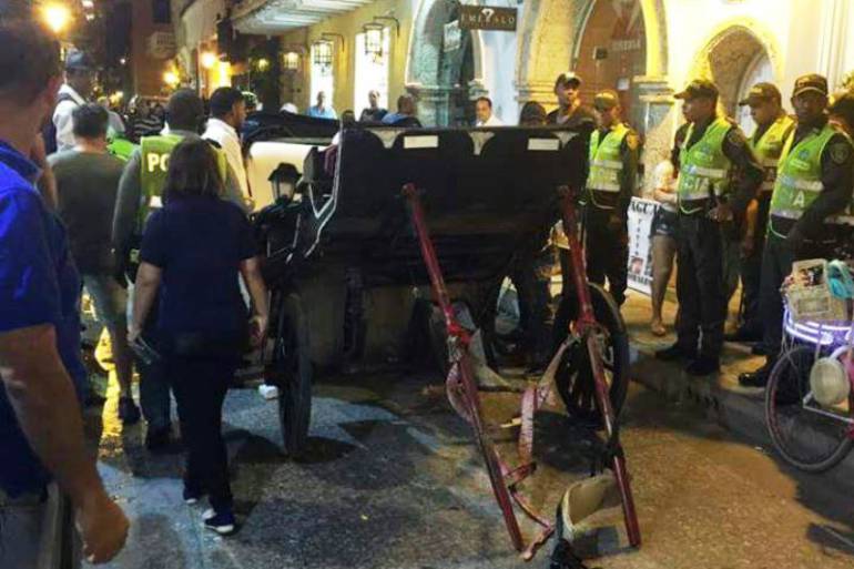 El caballo afortunadamente resultó ileso y defensores de los derechos de los animales hicieron un llamado a las autoridades para que no se descuiden los controles a los caballos cocheros de Cartagena.