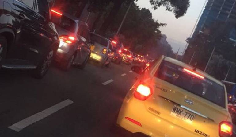 En la zona el paso fue restringido a un solo carril, lo que genera un enorme trancón. Los vehículos que viajan de norte a sur por la Séptima deben bajar por la calle 100 y tomar las carreras 11 o Autopista Norte.