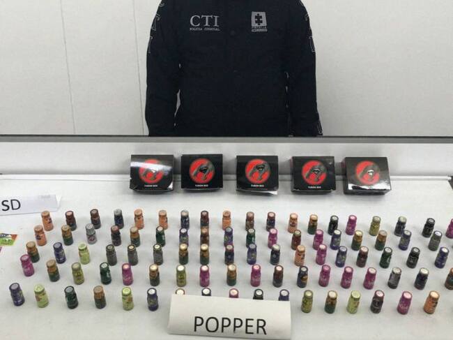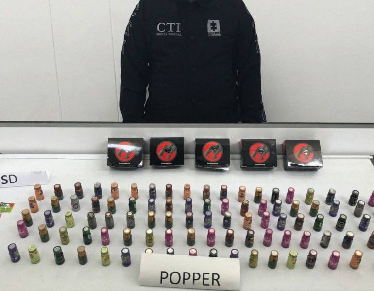 En las bodegas de una empresa de envíos de correspondencia ubicada en el municipio de Dosquebradas los miembros de la Fiscalía tras hacer la respectiva inspección encontraron que dentro de una caja que en su guía de envío decía tener cosméticos, había 100 frascos de popper y 75 dosis de LSD.