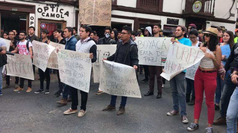 La visita del expresidente y senador, Álvaro Uribe Vélez, generó amores y odios por igual en la capital de Boyacá. Con pancartas y protestas recibieron en el centro histórico de Tunja, estudiantes de la Universidad Pedagógica y Tecnológica de Colombia, y otros ciudadanos.