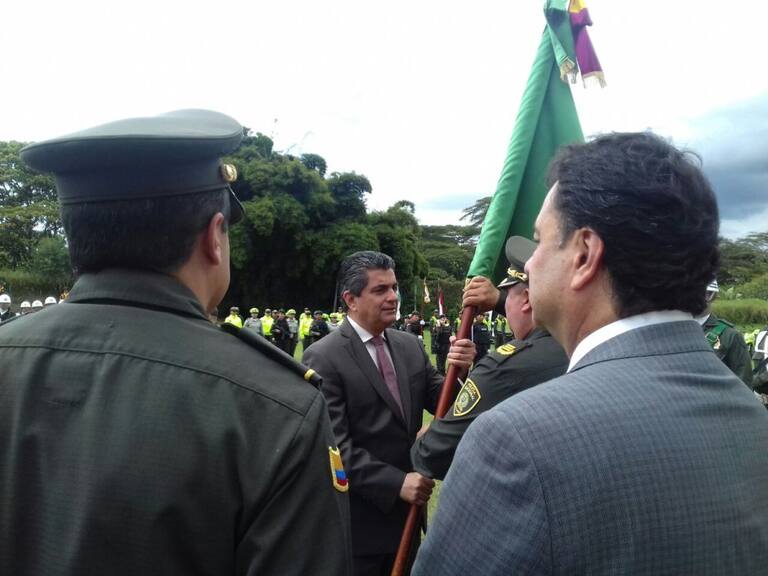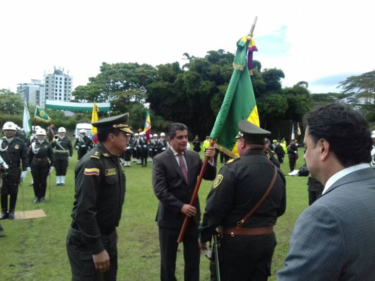 Gobernador del Quindío entrega la bandera del departamento al nuevo comandante de la policía