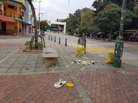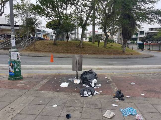 Basura desparramada en andenes y glorietas como la del caballo de Bolívar, frente a la Universidad Industrial de Santander, UIS, y otros sectores del barrio San Alonso se observó durante el fin de semana.