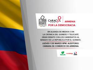 Caracol Radio Armenia en alianza de medios con La Crónica del Quindío, Telecafé y la Cámara de Comercio de Armenia y el Quindío realizarán este jueves 1 de marzo el gran debate con los candidatos al senado por el Quindío a las 8 de la noche en el auditorio de la Cámara de Comercio.