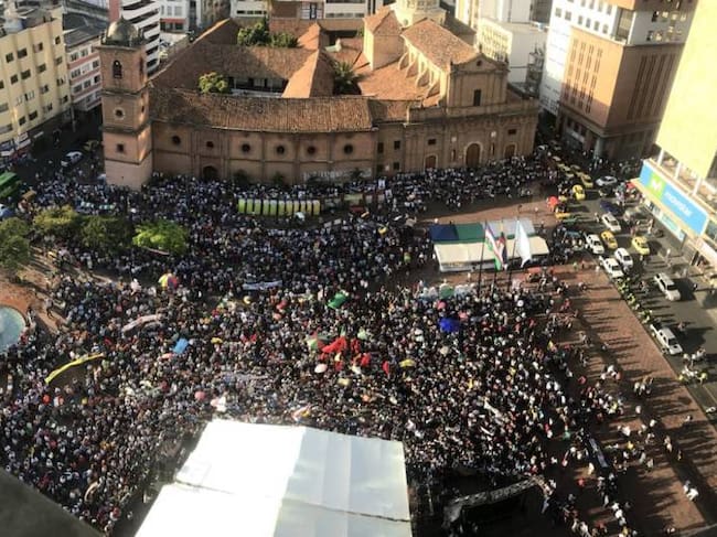 Una masiva manifestación adelantó en la Plazoleta de San Francisco, en el centro de Cali, el candidato presidencial por la Colombia Humana, Gustavo Petro.