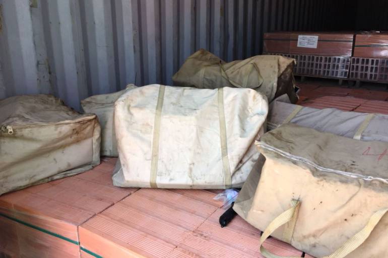 Por esta razón, Unidades de la Policía Antinarcóticos realizaron una inspección detallada al contenedor ubicado en Muelles El Bosque, que dio como resultado el hallazgo de 10 tulas que contenían 407 paquetes rectangulares con lo que parecían ser sustancias estupefacientes, ocultos entre los ladrillos que se encontraban en el interior.