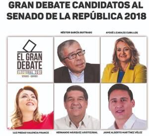 Al debate están invitados los candidatos al senado, Aydeé Lizarazo del Mira, Luz Piedad Valencia del partido Liberal, Jaime Alberto Martínez de la Alianza Verde, Hernando Márquez del Centro Democrático y Néstor García Buitrago por la lista de La Decencia.