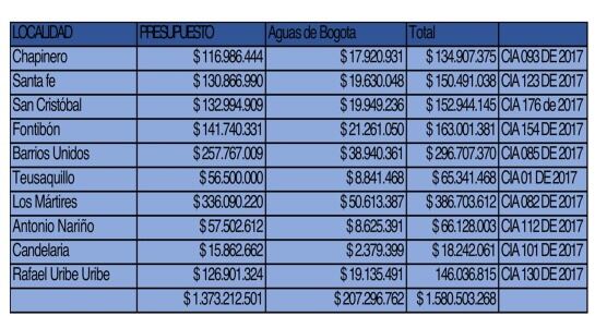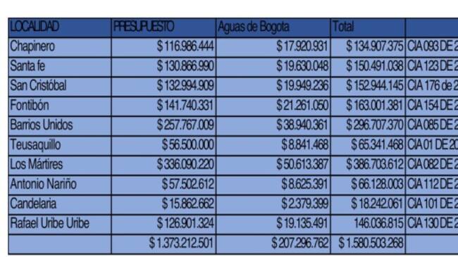 En estos convenios se invirtieron alrededor de 1.373 millones de pesos y actualmente la empresa Aguas de Bogotá tiene 84 camiones recolectores operativos para estas labores.