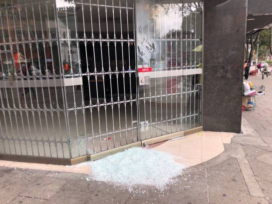 Este miércoles y luego de los disturbios, las calles vecinas a esta institución amanecieron con los vidrios rotos principalmente de las entidades bancarias que fueron atacadas en medio de las manifestaciones que dejaron cuatro personas heridas.