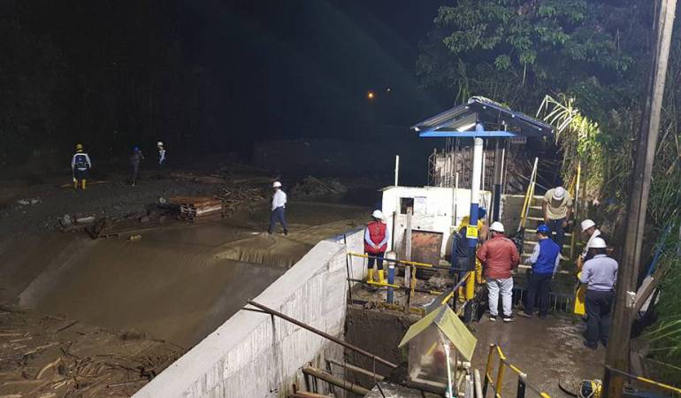 Personal de la compañía de acueducto trabaja en la bocatoma del Combeima.