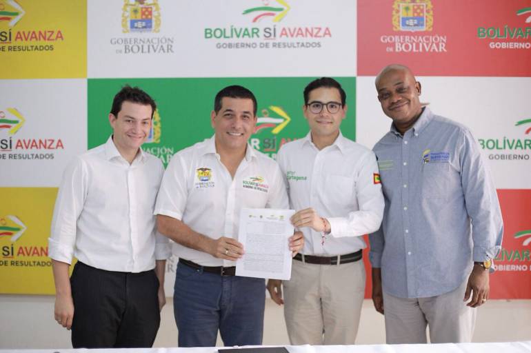 La firma del convenio, tras una inversión de $15.000 millones por parte de la Administración Departamental, fue oficializada por el gobernador de Bolívar, Dumek Turbay Paz; el alcalde (e) de Cartagena, Sergio Londoño Zurek; y el ministro de Ambiente, Luis Gilberto Murillo, quien asistió