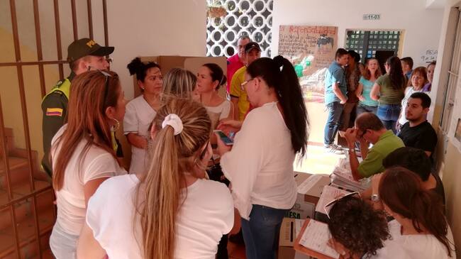 Inconformismo en mesa de votación al no tenerse papeleta de consulta presidencial(Foto Caracol Radio Cúcuta)