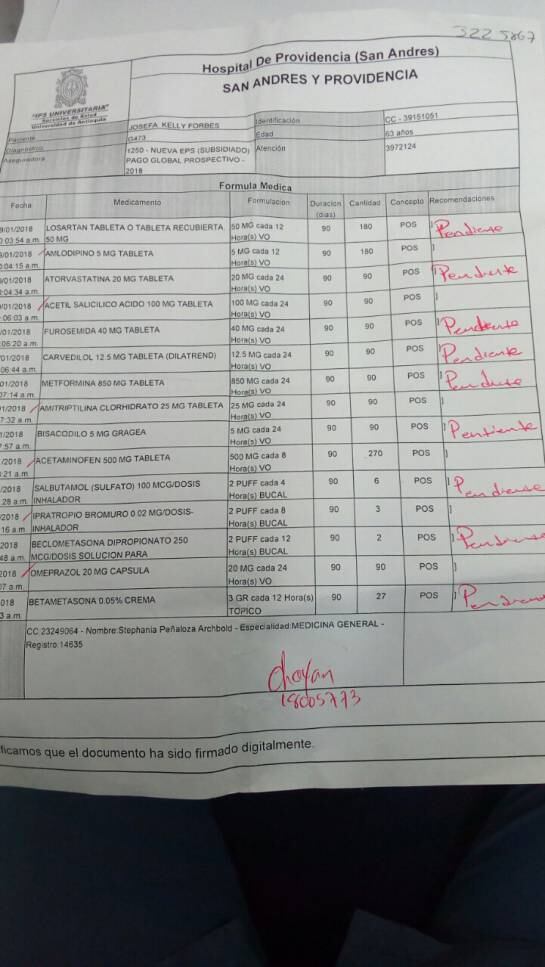 Frente a la situación aún no se ha pronunciado SALUS GLOBAL PARTNES SAS, entidad responsable de la administración de ese establecimiento, tampoco lo ha hecho el gobernador de la Isla Ronald Housni, a que le adjudican algunos habitantes del departamento la responsabilidad de la situación.