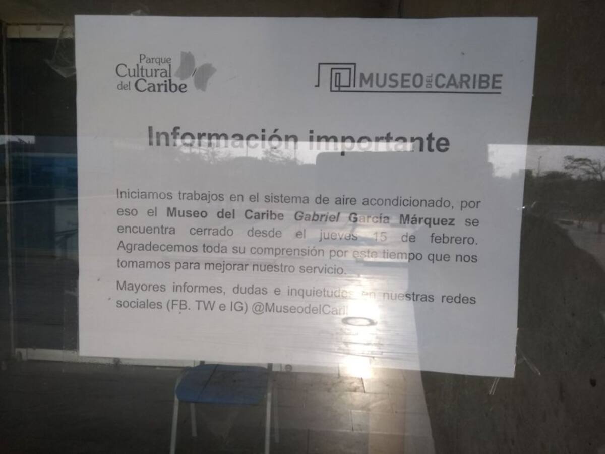 Un aviso advierte la suspensión del servicio en el Museo del Caribe