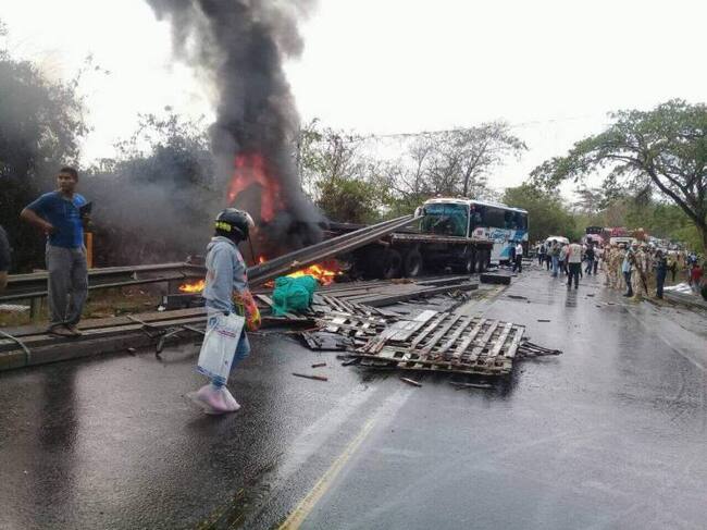 La persona fallecida es el conductor de la tractomula, quien transportaba varillas. Ese vehículo de carga terminó incinerado, y con toda la carga en el cabezote.