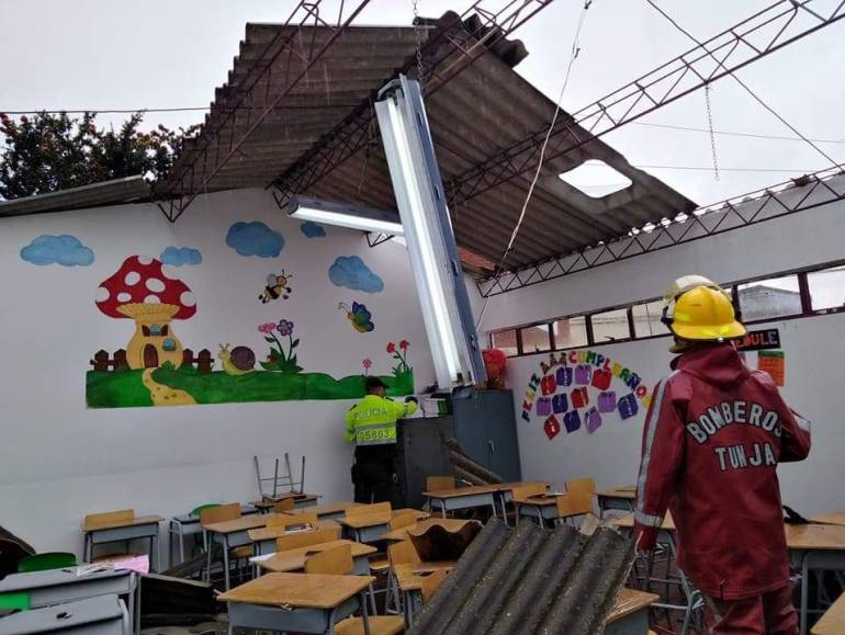 Los fuertes vientos causaron el colapso del techo de uno de los salones de clase del colegio Silvino Rodríguez ubicado al suroriente de Tunja, en el barrio san Antonio.