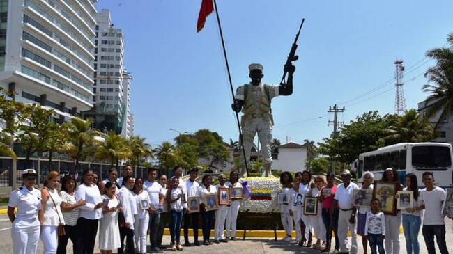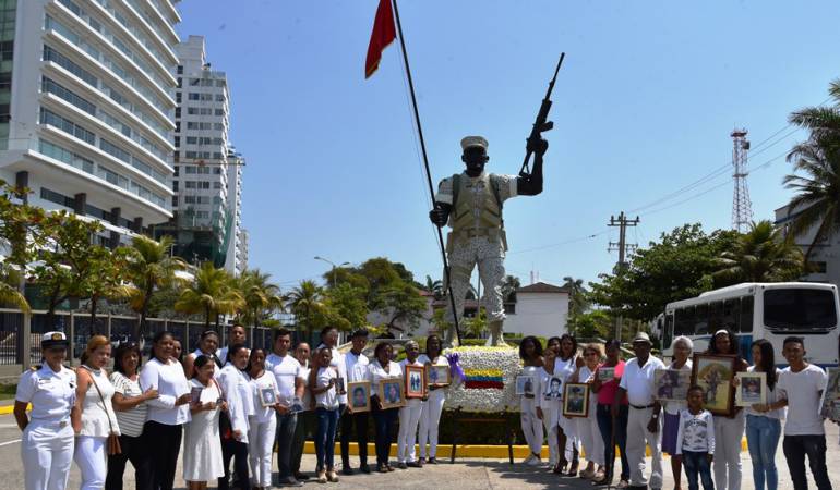 El acto religioso contó con la participación de los Comandantes de las diferentes unidades pertenecientes a la Fuerza Naval del Caribe, en cabeza del señor Contralmirante Francisco Hernando Cubides Granados, Director de la Escuela Naval de Cadetes “Almirante Padilla”. Al igual que esposas, madres, hijos y afectados por el conflicto, hicieron presencia durante los actos conmemorativos y llevaron elementos simbólicos de las víctimas, con el fin de recordar y agradecer el esfuerzo realizado por ellos para la seguridad y la Paz de la Nación.