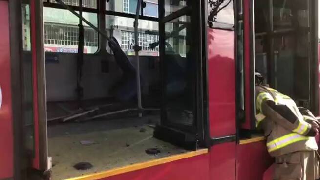 El choque de los dos buses articulados deja 27 personas lesionadas.