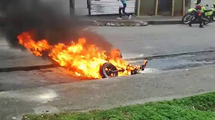 Hombre prende su moto en puesto de control de la Policía en Manizales