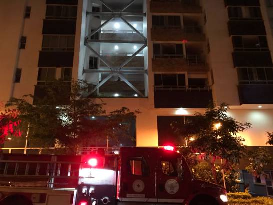 Dos máquinas del Cuerpo de Bomberos de Bucaramanga atendieron un incendio desatado en el segundo piso de un edificio de apartamentos, en el sector de Nuevo Sotomayor informaron los residentes de la zona.