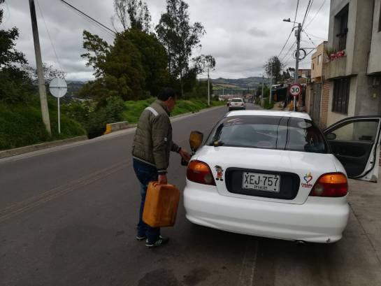 "Por acá no hay nada más que hacer, no hay empleo, a personas de mi edad, que tengo 40 años ya nadie nos da trabajo, por eso nos ponemos a traer gasolina de Ecuador, que es más barata para venderla acá, sobre la vía y ganarnos 20.000 pesos al día", indicó uno de los pimpineros mientras llenaba el tanque de un carro.