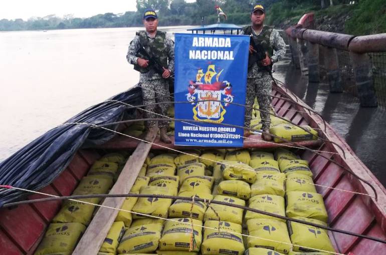 En el desarrollo de una operación de registro y control fluvial, la Armada Nacional incautó 24 toneladas de cemento y gran cantidad de material que, al parecer, sería utilizado para el procesamiento de clorhidrato de cocaína en el departamento de Bolívar.