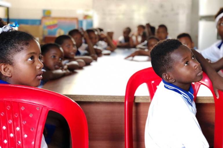 La entrega fue a la institución educativa María Auxiliadora de Marlinda, sede INETEB, ubicada en el sector de La Boquilla, Cartagena, como parte del trabajo que se ha venido realizando con los niños de la zona junto a la ONG ‘100 Cameras’.