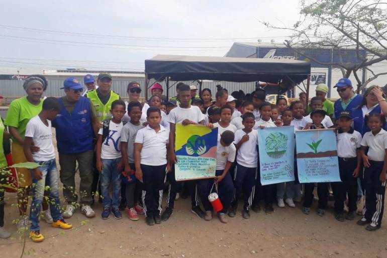 Entre las actividades realizadas, funcionarios del Grupo de Prevención y Educación Ciudadana y del Modelo Nacional de Vigilancia Comunitaria por Cuadrantes de la Estación de Policía Nuevo Bosque, hicieron participes a 80 niños, niñas y adolescentes de instituciones educativas cercanas, de la siembra de cincuenta especies de flora, entre palmeras y almendras, en un espacio que antes era un foco de inseguridad, por la proliferación de escombros y basuras, zona actualmente en recuperación.